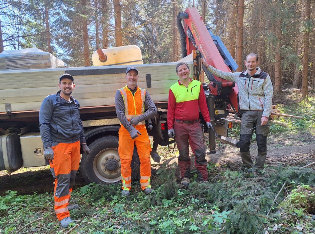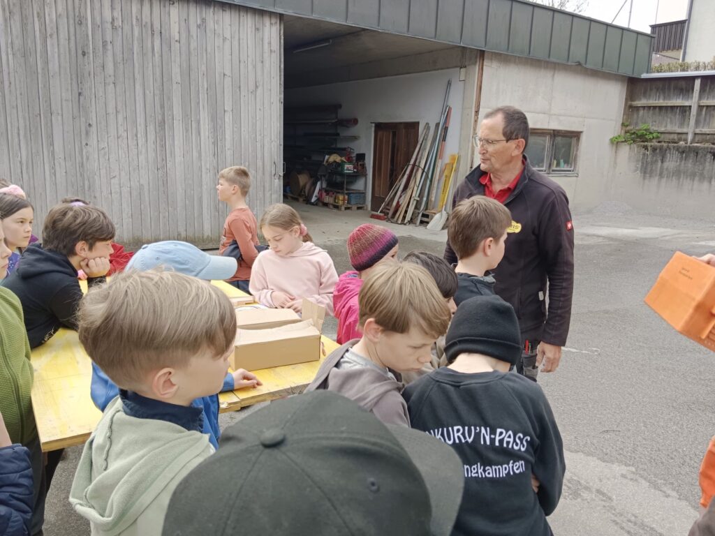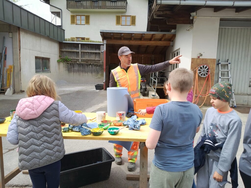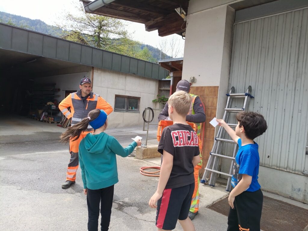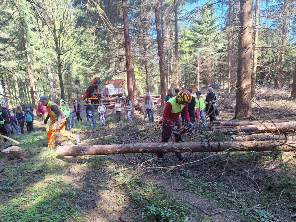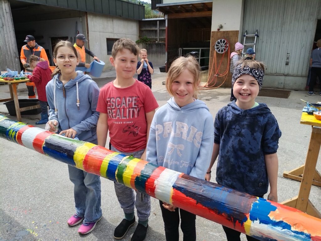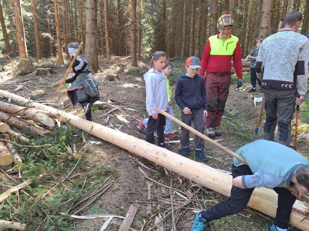Um 10:00 Uhr trafen die Kinder der 3. Klassen mit ihren Lehrerinnen Lisa Dillersberger und Lisa Salcher die zwei Gemeindebauhofmitarbeiter Michael Culka und Markus Egger, den Waldaufseher Andreas Höck und den Baumspender Matthias Egger. Der Baum wurde von Matthias gefällt und von den Kindern entrindet und zum LKW gezogen. Die Zeit wurde gleich auch lehrreich ausgefüllt, da Andreas die Kinder an seinem großen Wissen über den Wald teilhaben ließ. Vielen Dank an alle Beteiligten!