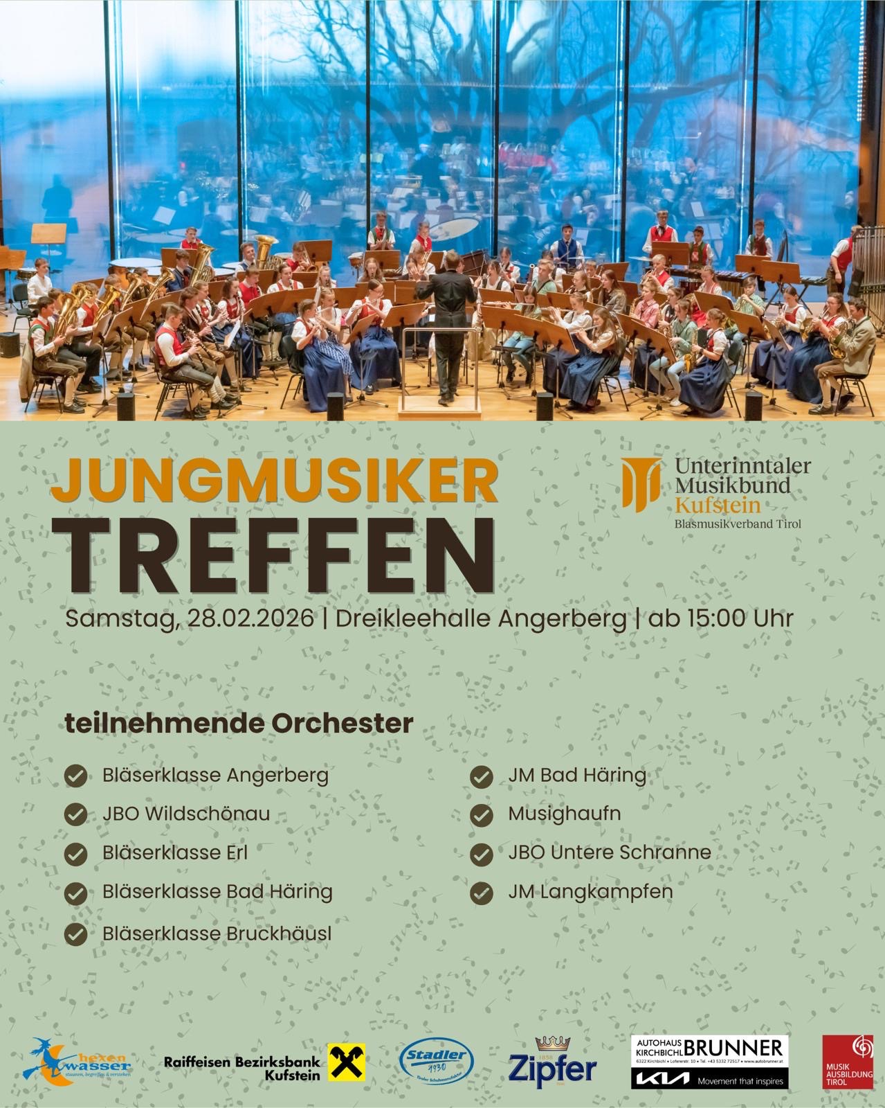 Die Bläserklasse Bad Häring spielte am 28.02.2026 ihr erstes Auswärtskonzert in Angerberg in der Dreikleehalle. Zahlreiche Zuhörerinnen und Zuhörer konnten sich vom Talent der Kinder überzeugen. Gratulation!