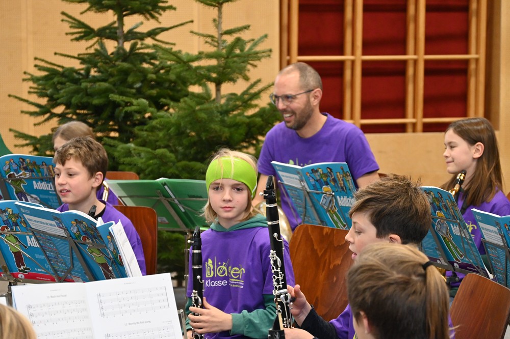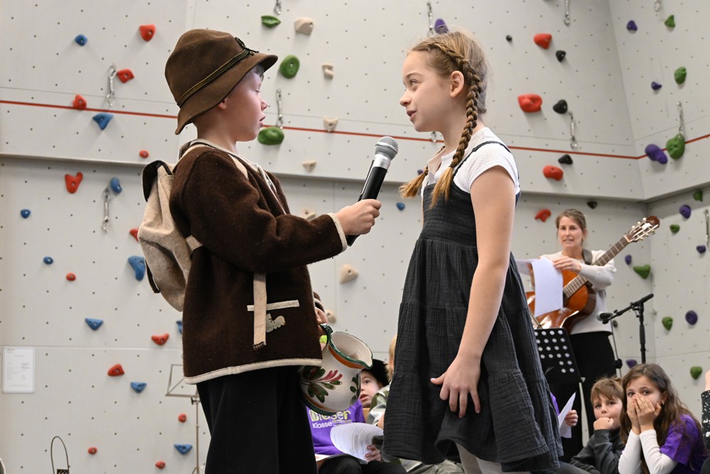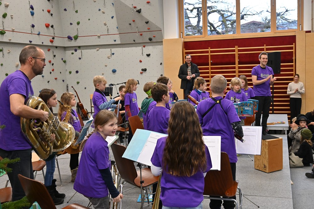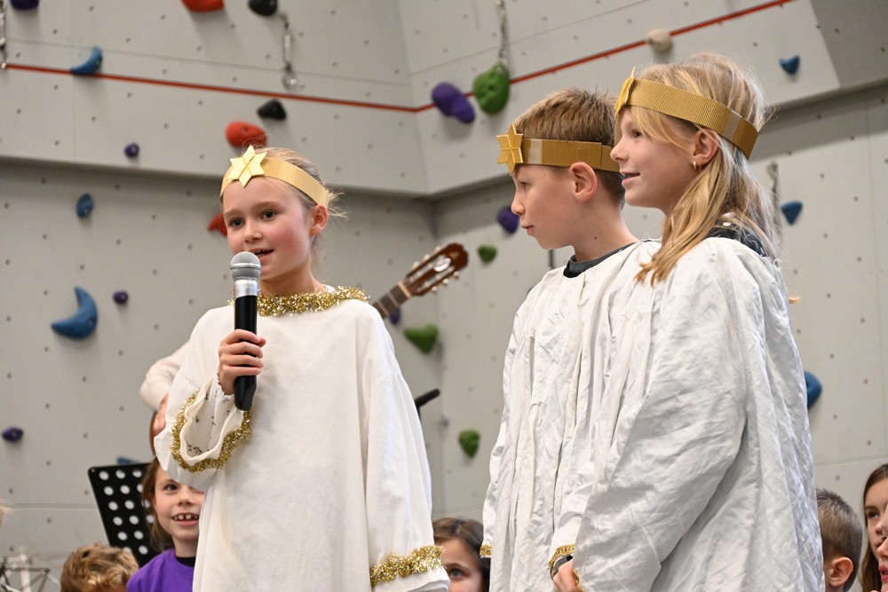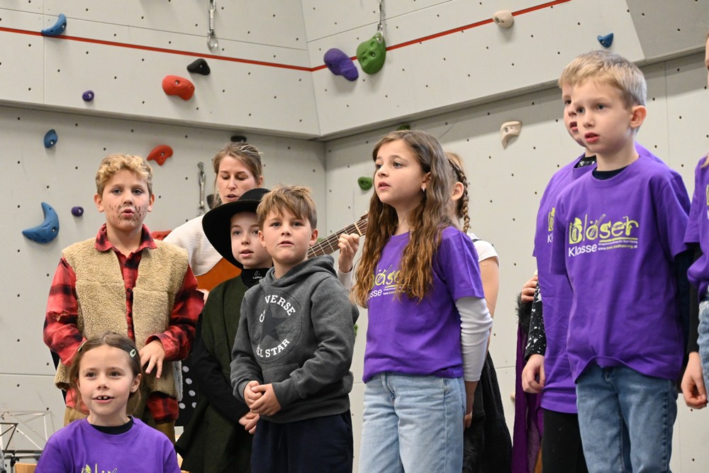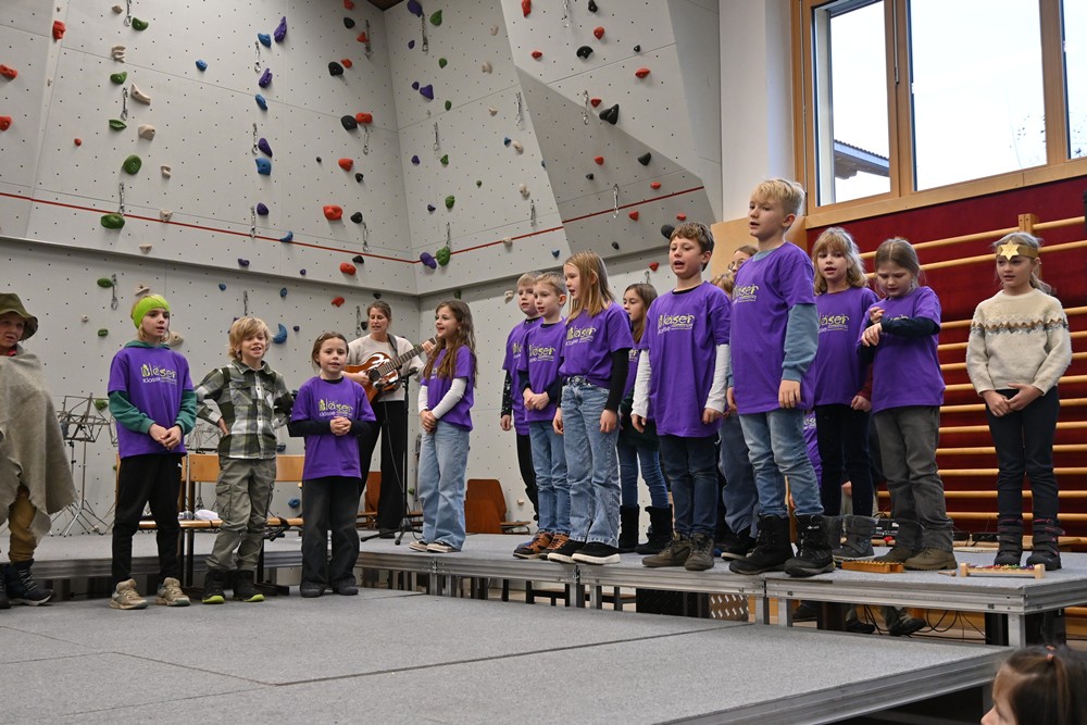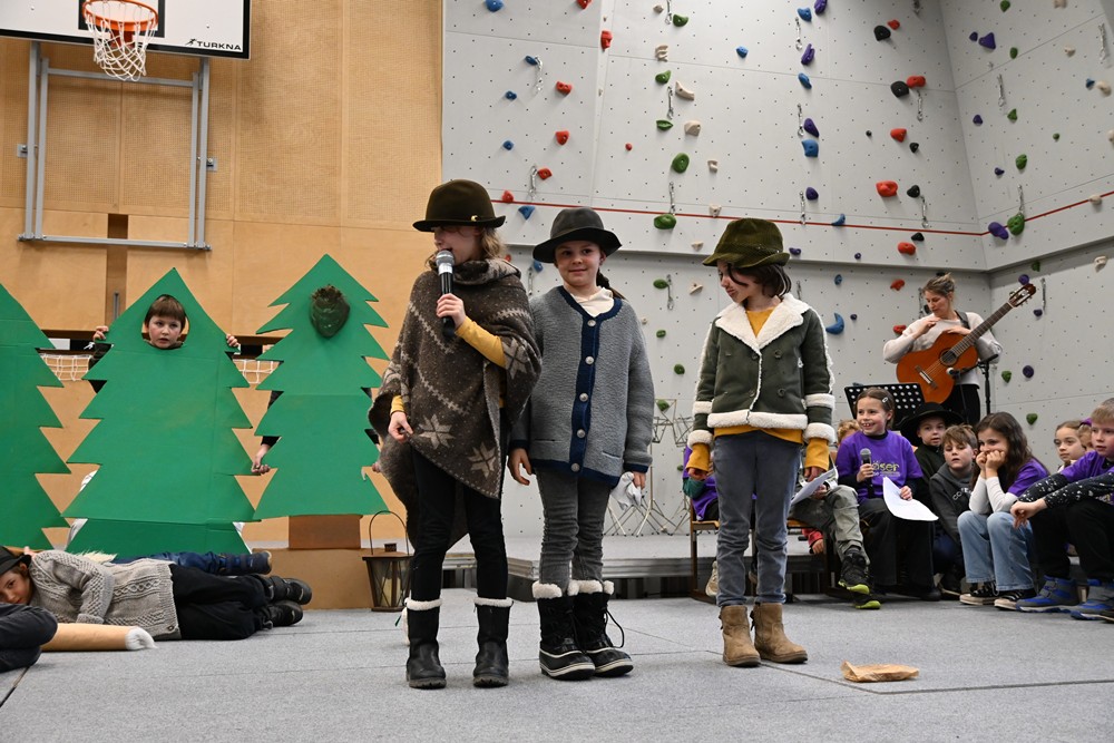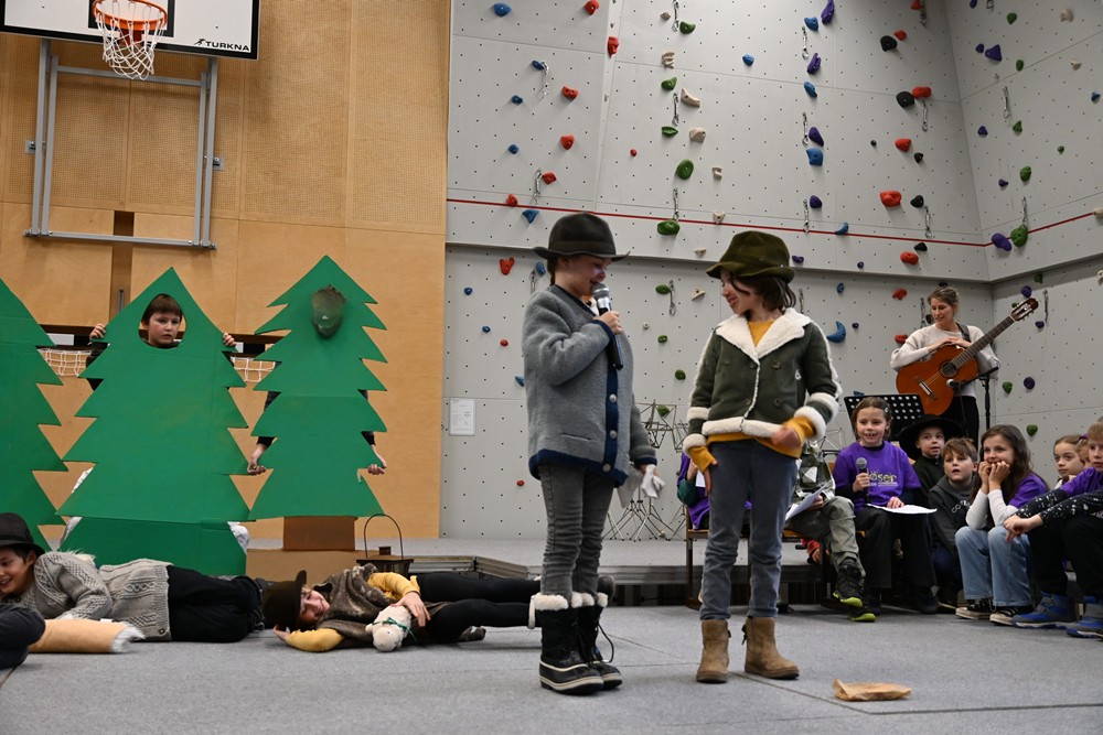 Jedes Jahr ist auch die VS Bad Häring beim Pölvenzauber dabei: Heuer stellte sich die neue Bläserklasse vor und erhielt begeisterten Applaus von einem großen Publikum. Es war staunenswert, dass die Kinder nach den wenigen Wochen Unterricht schon so toll drei Musikstücke spielten. Und auch für das Hirtenspiel hatten die Kinder der dritten Klassen gut einstudiert: Als die Engel die Geburt eines besonderen Kindes verkündet hatten, machten sich die Hirten mit ihren Geschenken auf den Weg, aber einen Teil davon schenken sie bereits unterwegs an bedürftige Menschen her. Den drei Räubern, die das beobachteten gefiel das gar nicht, denn lieber hätten sie sich in einem passenden Moment die große Beute geholt. Als sie schließlich selbst auch etwas geschenkt erhielten, anstatt rauben zu müssen, berührte das ihr Herz und mit der Räuberei war es vorbei.